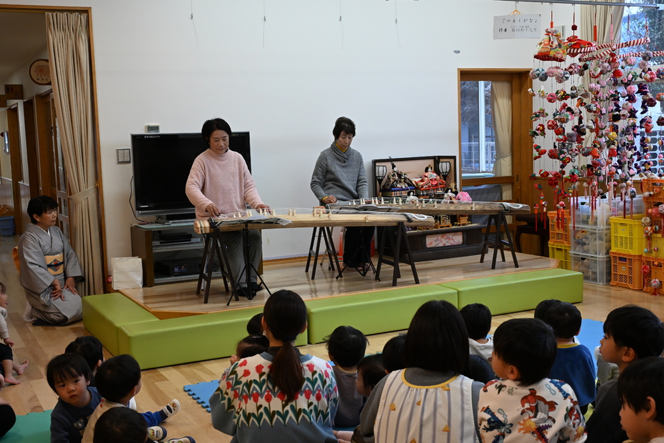 今日はひなまつり お琴の先生がみんなの為にお琴の演奏をしてくださいました。 初めて聞くお琴の音色にうっとり。 歌える曲ではみんなで一緒に歌って大盛り上がりでした。